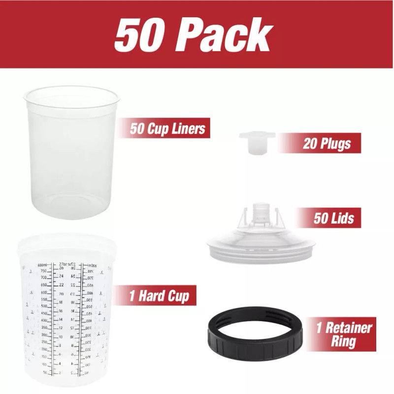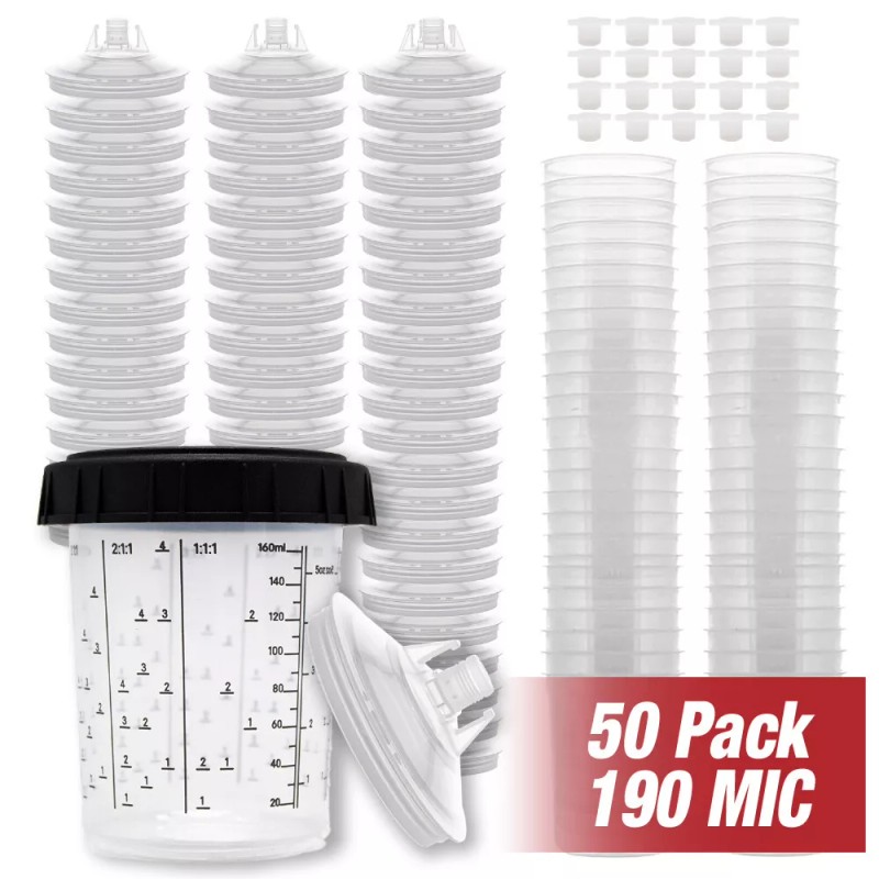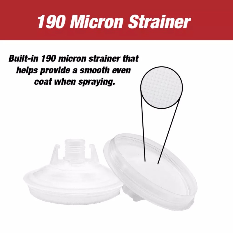 - 50 Lids with 190 Micron Strainers: The lids ensure a mess-free operation and filter out any paint impurities for a smooth finish.