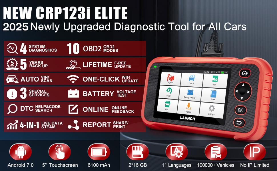 LAUNCH CRP123I Elite code scanner was selected as one of the top three most popular automotive diagnostic maintenance products in 2022. It has won more than 50 million global users and a good reputation among consumers all over the world . Youtube Influencer Mechanics Highly Recommended Must-Have tool for home mechanics in 2024. in 2025,LAUNCH focuses on product upgrades and refine ,aiming to provide high-quality products, up-to-date technology to consumers around the world.