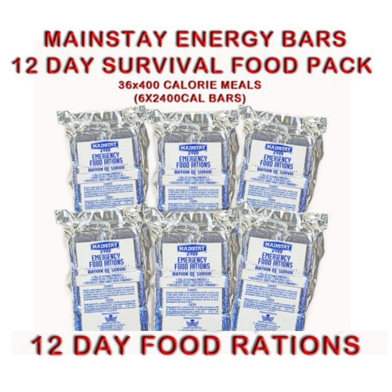 - 12 Day Survival Food Supply, Contains: (6) Mainstay 2400 Calorie Bars