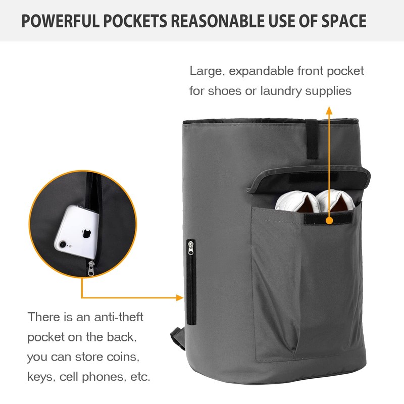 - Perfect Laundry Hamper: You can hang this extra-large laundry backpack to your door or wall as a practical laundry hamper to collect dirty clothes,laundry and make your items in order, ideal for dorm, apartment, college dorms, travel and home. Portable laundry bags is also flexible that you can easily fold and store in any drawer when not used. and great gift for everyone