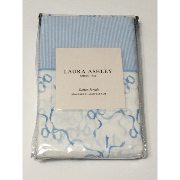Laura Ashley Standard Pillowcase Set - Trailing Bows Blue White