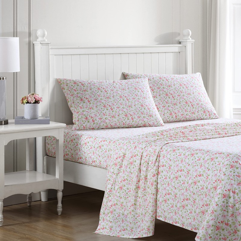 Laura Ashley - Twin XL Sheets, Cotton Percale Bedding Set, Lightweight & Breathable Home Decor, Dorm Room Essentials (Norella Pink, Twin XL)