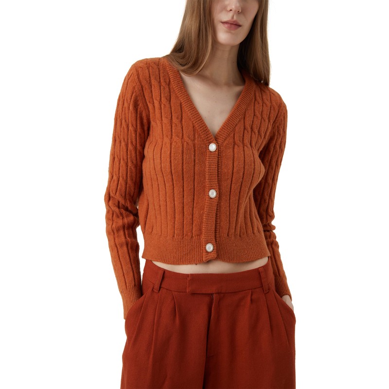 Laurant Colardelle Cable Knit Cropped Cardigan, 100% Cotton, Orange, Size M (UK, Alpha, One Size, Regular, Regular, red)
