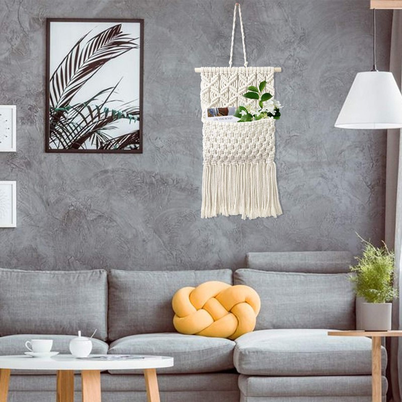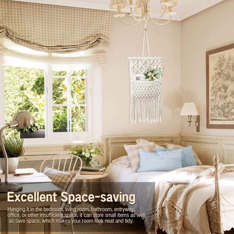 This woven tapestry can store small items and save space, so you can use it to hang it in the bedroom, living room, bathroom, entryway, office or other insufficient space, making your home look neat and tidy.
