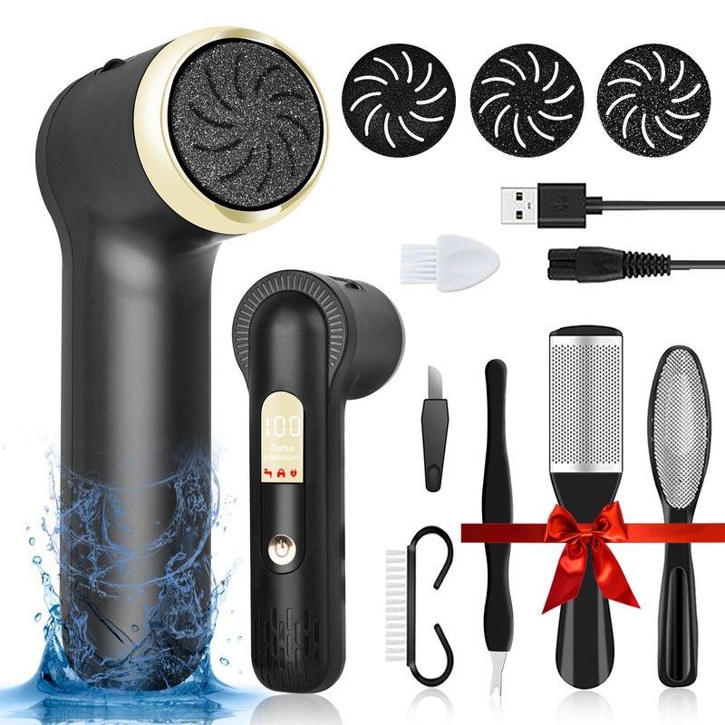 - IPX7 WATERPROOF -- IPX7 waterproof design foot file electric, can be rinsed under running water after use. The electric foot scrubber effectively removes dead skin and leaves the soles of your feet smooth and silky. Wet and dry use (Note: Please do not soak in water for a long time)