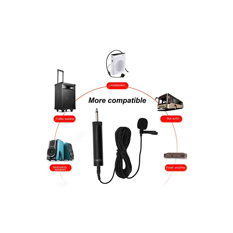 - Wide application: the 6.35 mm jack of this lapel microphone connects amplifiers, mixers and sound cards. It is one of the most important accessories of musical instruments