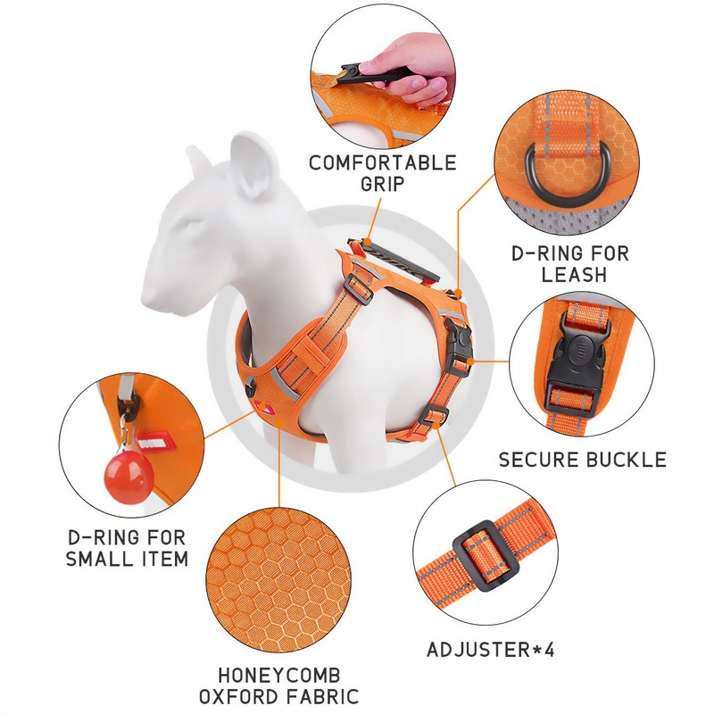LAVAMOND Dog Harness No Pull Adjustable Reflective Soft Padded, Small Medium Large Dog Vest Harness, with Heavy Duty Easy Control Handle(Orange,XS)