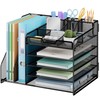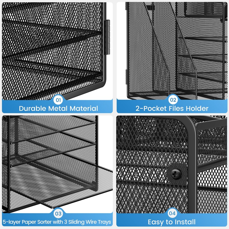 Lavatino Desk Organizer, 5-Tier Metal Mesh Paper Letter Tray with 2 File Holders & 7 Flexible Dividers for Office or Home Desk Organizers and Accessories, Keep Workspace Supplies Neat, Black