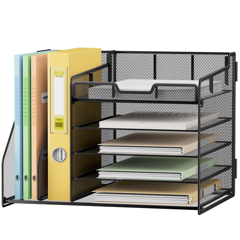 • Multi-purpose Desktop Organizer: This desktop organizer features 5 sliding trays and 2 side file holders, offering vertical storage for all your files, books, A4 papers, and office supplies. Free up over 50% of your desk space and say goodbye to clutter for good