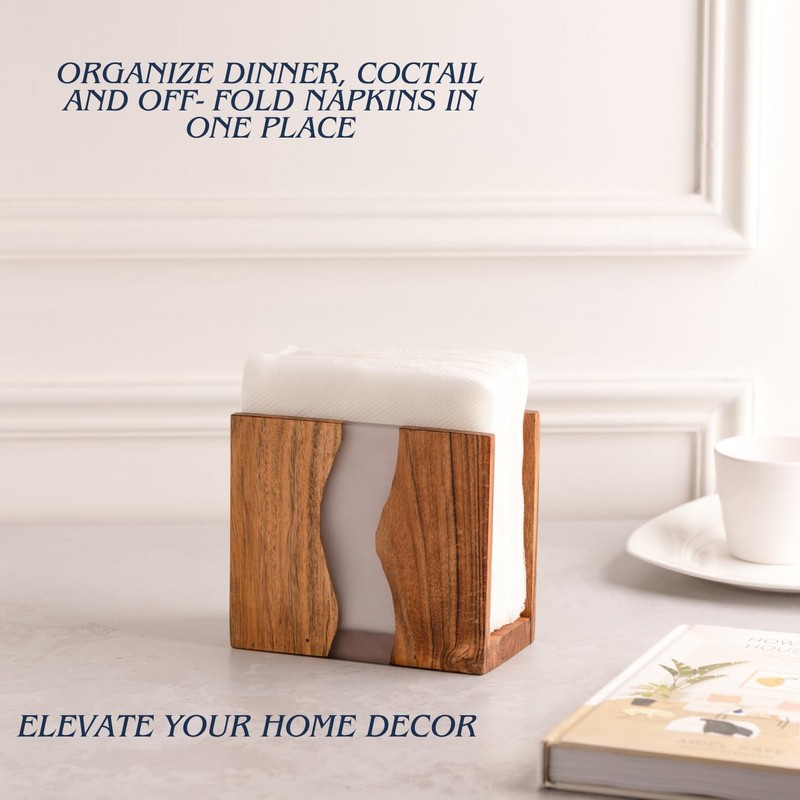 - RUSTIC & MODERN LOOK: The combination of Acacia wood’s textured look with translucent Epoxy gives a rustic and modern look at the same time. Acacia wood makes it more durable than bamboo napkin holders. This napkin dispenser would be talking point among your guests.