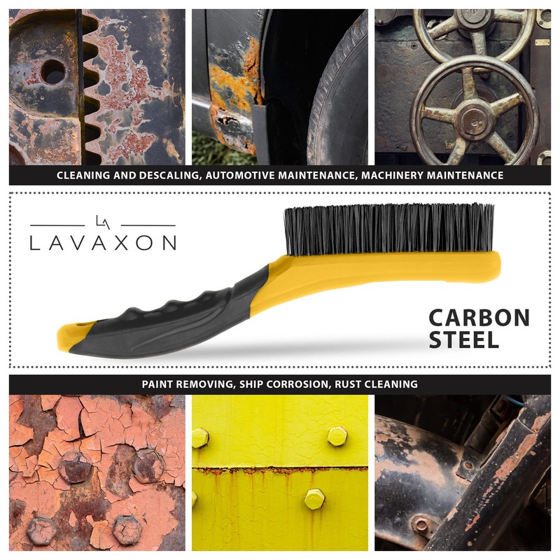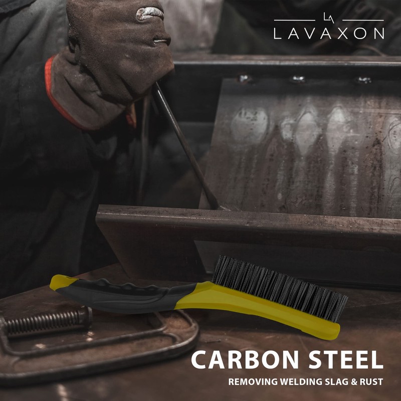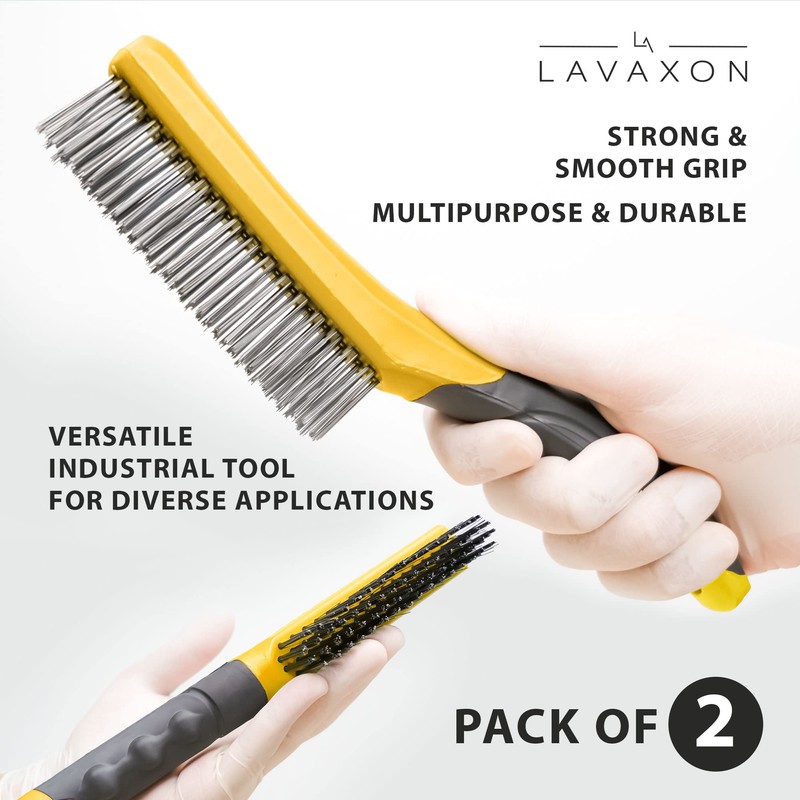 Lavaxon Lavaxon Wire Brush Set-Heavy Duty Stainless & Carbon Steel Bristles with Plastic Handle Grip for Rust, Wielding Slag, Dirt & Paint Scrubbing with Deep Cleaning C 10 Inches (Pack of 2-Yellow)