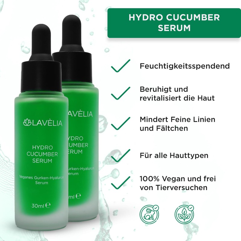 LAVÈLIA Hydro Cucumber Serum - Vegan Moisturising Serum with Cucumber Extract, Hyaluronic Acid & 15 Plant Extracts - Cooling, Revitalising & Nourishing for Radiant Skin, 30 ml