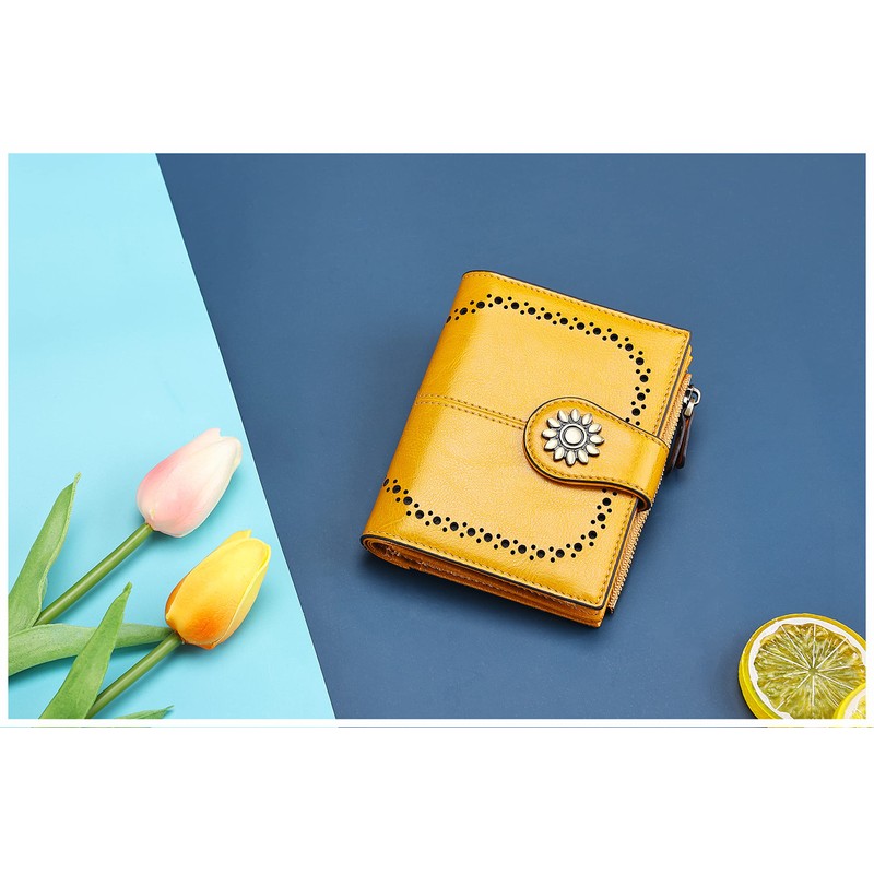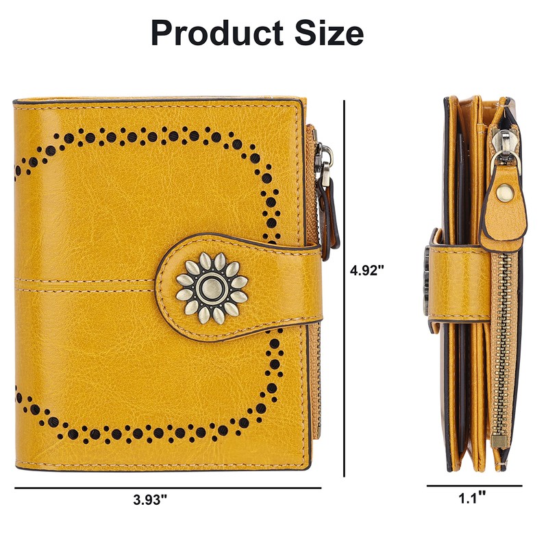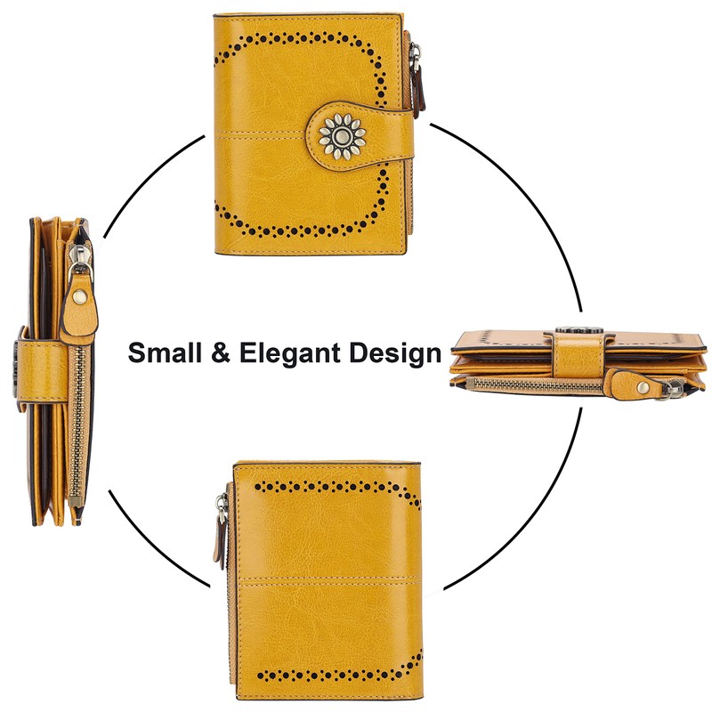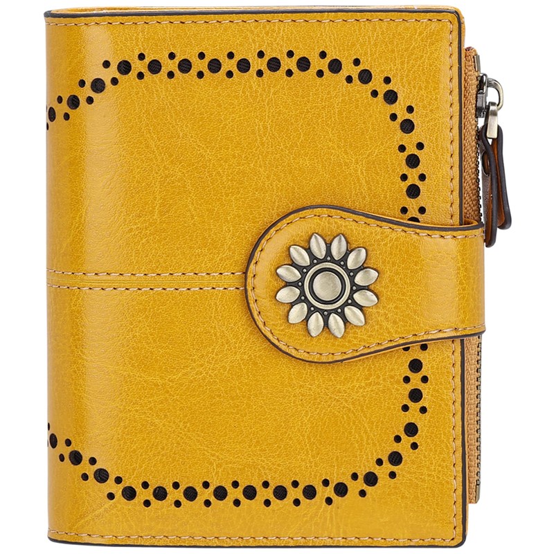Lavemi Womens Leather Wallet Small Compact RFID Blocking Credit Card Case Purse with Zipper Pocket(Yellow)