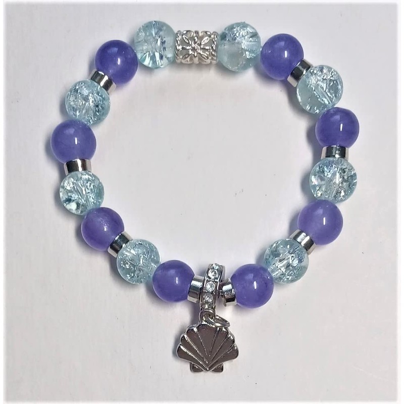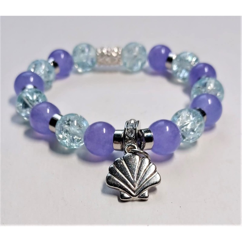 Lavender And Clear Crackle Bracelet with Shell Charm