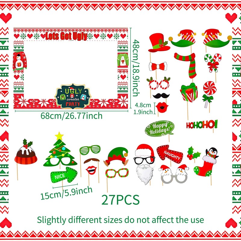 - You will get: 1 x Christmas photo booth prop, 27 x games selfie props
