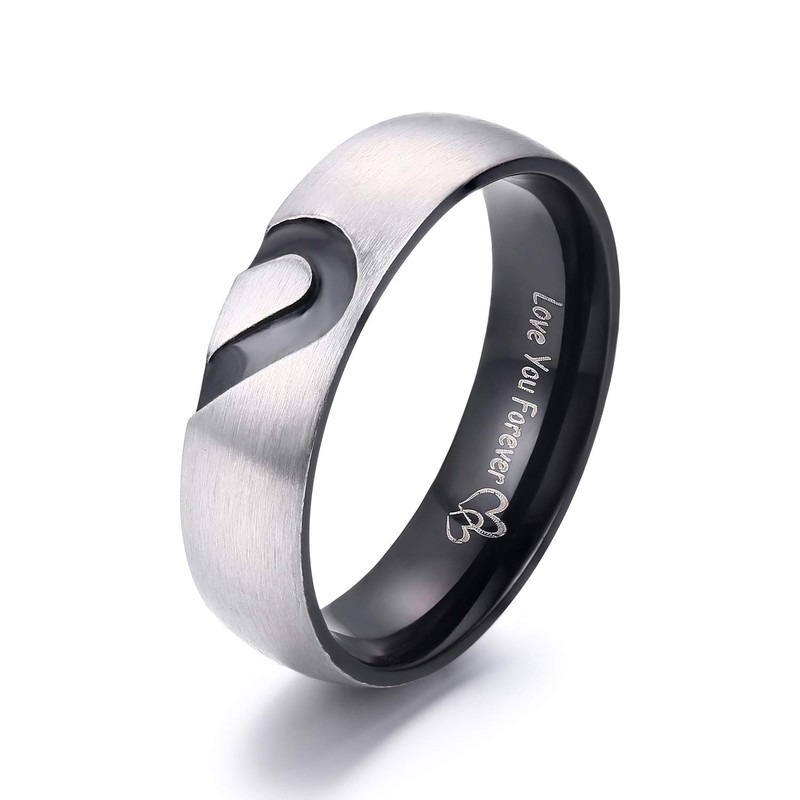 LAVUMO Matching Promise Rings for Couples Love You Forever Wedding Bands Sets for Him and Her Half Heart Rings Stainless Steel 6mm with Box Comfort Fit (Men 11 & Women 8)