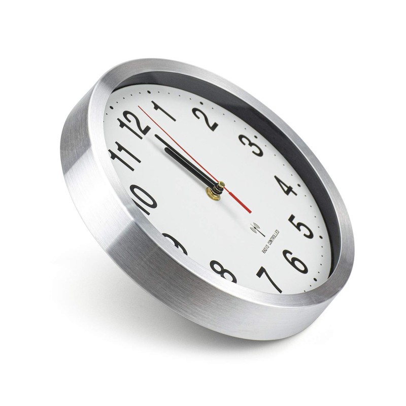 Lawei Radio-Controlled Wall Clock Aluminium Wall Clocks Kitchen Clock Automatic Switch Silver 25 cm