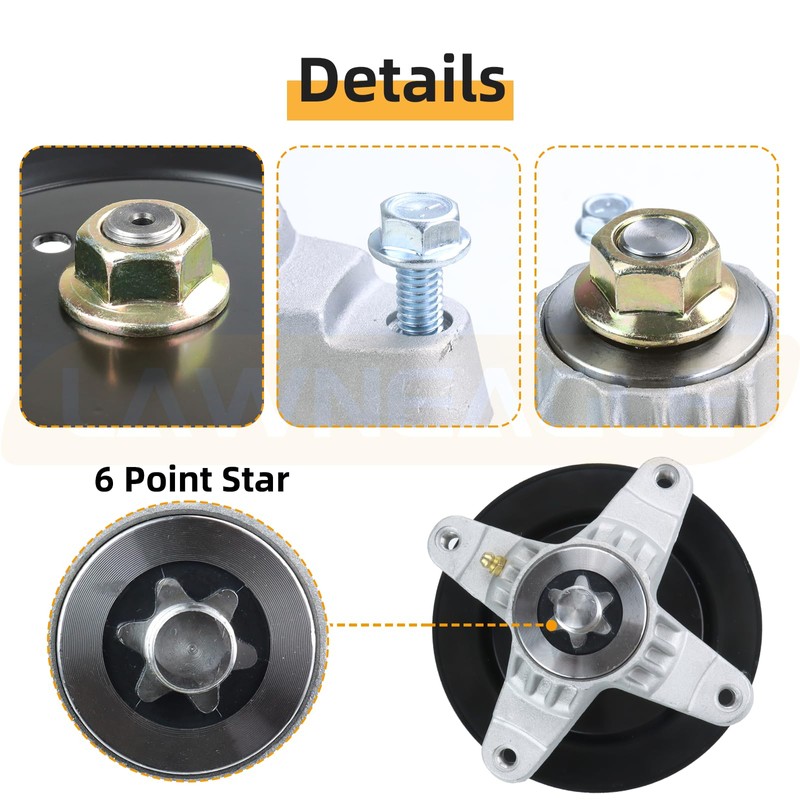 - DOUBLE-SEALED LUBED SPINDLE: This Spindle Assembly is Equipped with a Double-Sealed Bearing, Pre-Lubricated with Grease for Enhanced Durability and Smooth Operation. The Bearing is Further Protected by Plastic Sealing Caps, Ensuring Long-Term Performance.