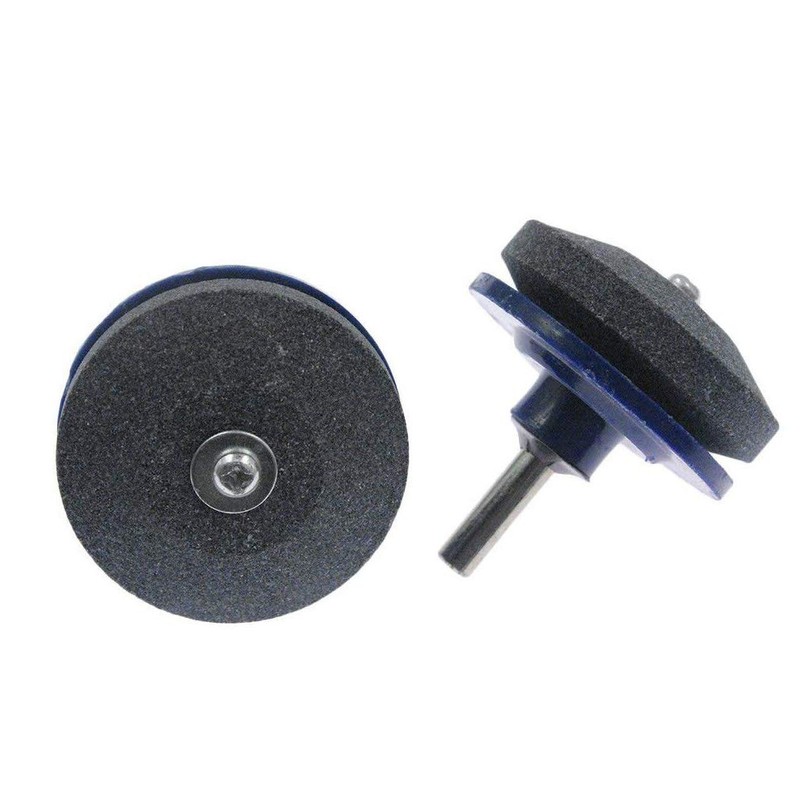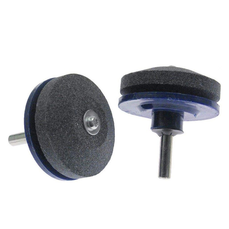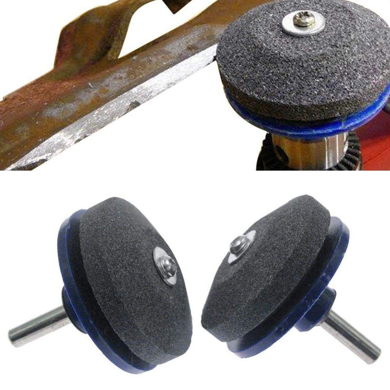 - 1/4" shank fits any power drill; built-in guide produces proper edge-angle; permanent abrasive stone.