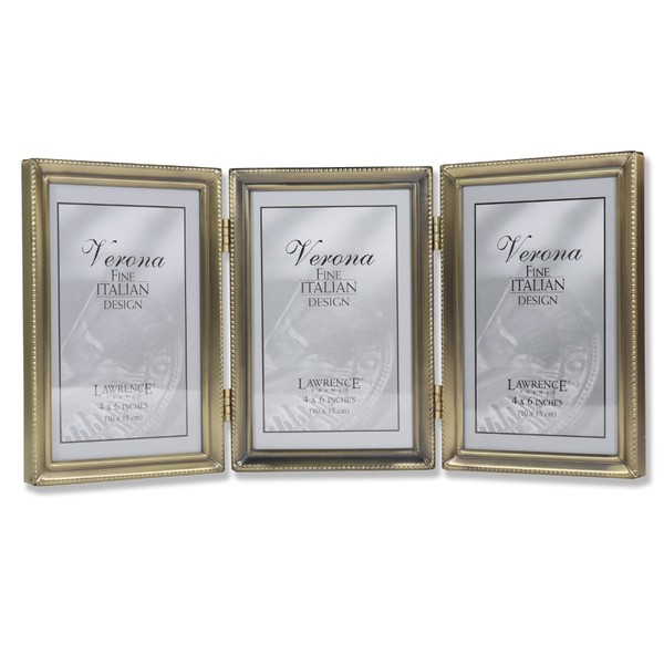 Lawrence Frames Antique Brass 4x6 Hinged Triple Picture Frame - Bead Border Design, Satin Gold