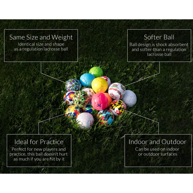 - SOFTER BALL - Soft design really helps new players of the game. Shock absorbent and softer than regulation lacrosse balls help ease players into learning the movements and mechanics.