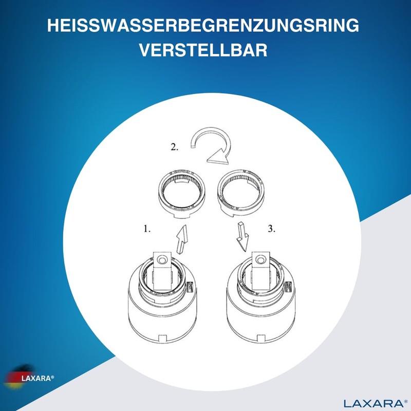 - Box contents: 1 x LAXARA cartridge high pressure 35 mm blue ceramic 121894-K35A with temperature limiter.