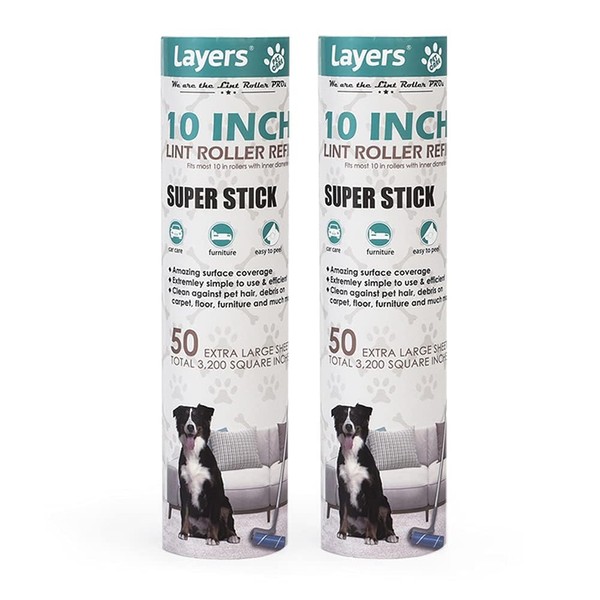 Layers 2 Pack Large Lint Roller Refill, Suitable for Most Large Rollers, mega Roller, 10 in Wide Rollers in The Market