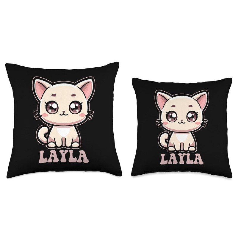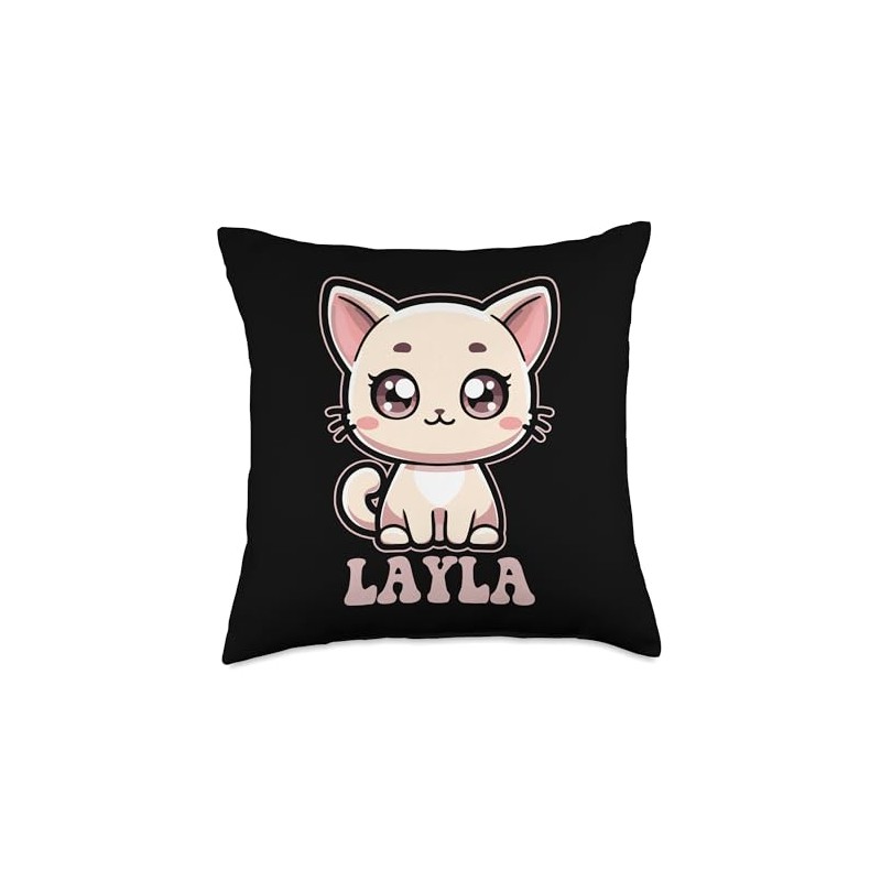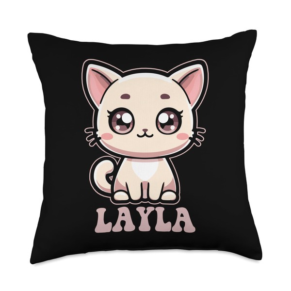 Layla Cute Kitty Cat Design for Girls Name Layla Throw Pillow