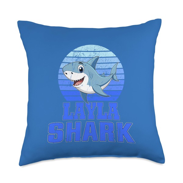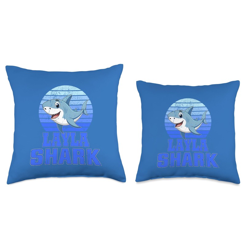 Layla Shark Family Reunion Squad First Last Name Throw Pillow