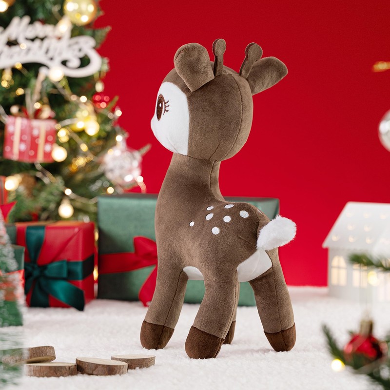 - Create a Cozy Christmas – Let the Sika Deer Plush Bring Holiday Magic! This Christmas, are you looking for that special decoration to brighten your home? This 12-inch Sika Deer stuffed animal is the perfect festive touch! Whether placed under the Christmas tree, beside the sofa, or on the windowsill, it brings a warm and inviting holiday atmosphere to your space. The gentle and adorable deer symbolizes peace and happiness, quietly guarding the laughter and precious moments of the holiday season.