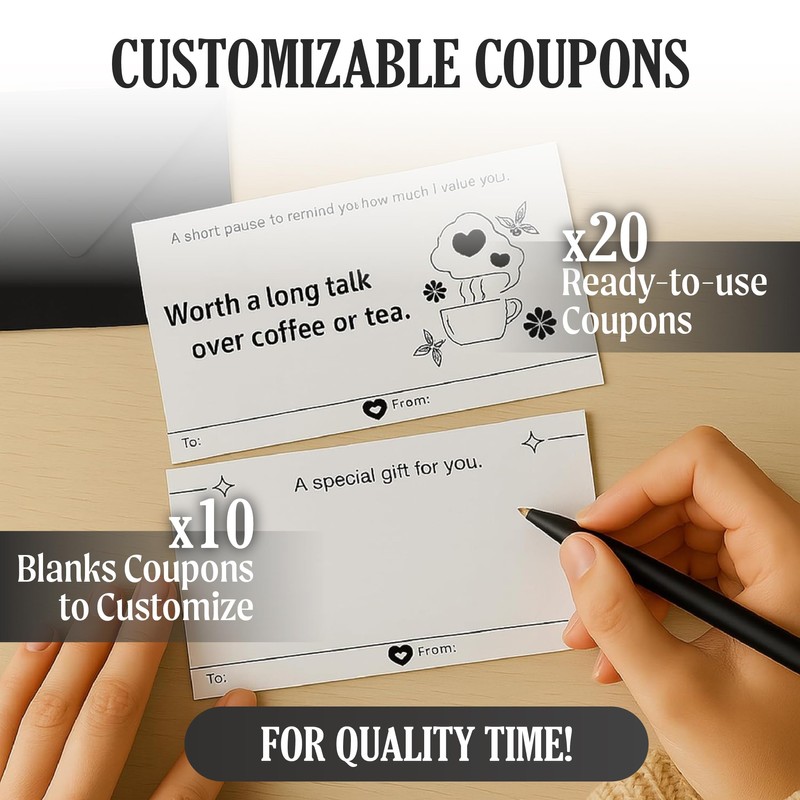 - ❤️ Create Lasting Memories Each coupon has a blank reverse side with space to write a date, message, or special note – turning a simple gesture into an unforgettable keepsake.