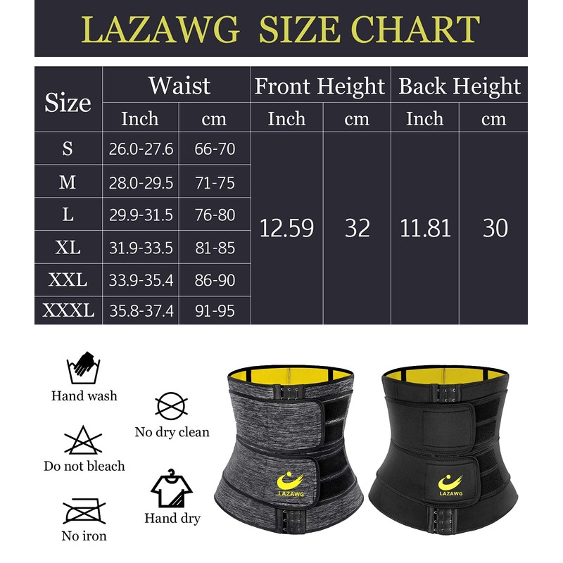 - LAZAWG Neoprene Waist Trainer - made of 80% Neoprene and 20% Nylon, comfortable, , smooth, close-fitting, can be worn inside and outside, good stretchy, not easy to wrinkle. Enhancing your workout, help to improve thermogenic activity and sweat.