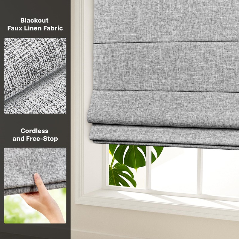 LazBlinds No Tools No Drill Cordless Roman Shades for Windows, Blackout Thermal Insulated UV Blocking Window Blinds, Lightweight Fabric Blinds for Indoor Windows, 26" W x 60" H, Blackout - Grey