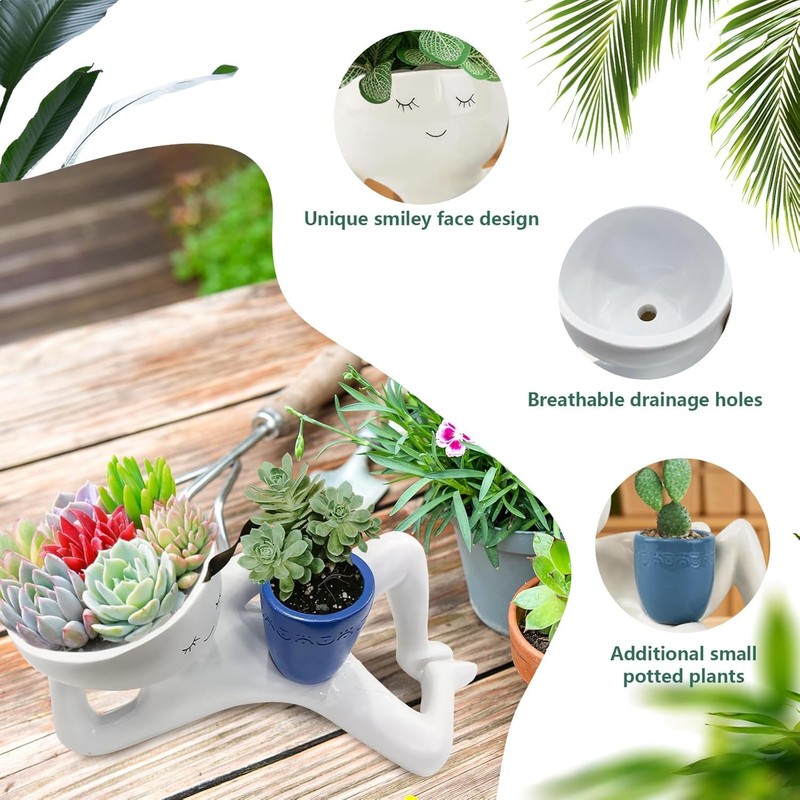 - 【Versatile Home Accent】Bring a natural touch and fun to your balcony, desktop, or any living space with this desktop body flower pot. It's an ideal habitat for a variety of small plants and a surprising gift for newlyweds, Christmas, housewarmings, birthdays, or other special occasions.