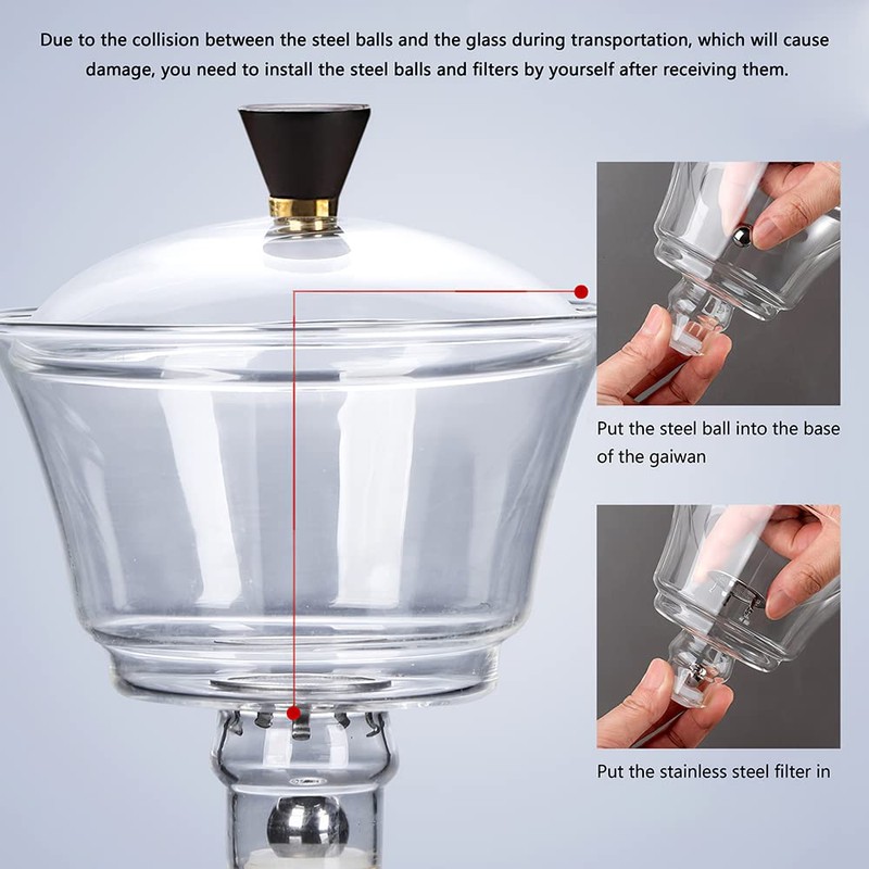 Lazy Kungfu - Tetera de goteo resistente al calor, juego de tetera de vidrio semiautomática para flujo de agua magnético, juego de tetera de vidrio de madera (Steelball)