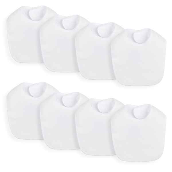 lazyrhino 8 Pack Baby Terry Bibs,Unisex for Boys and Girls, Adjustable Drooling Bibs with Snaps,Ultra Soft Absorbent Teething Bibs (white)