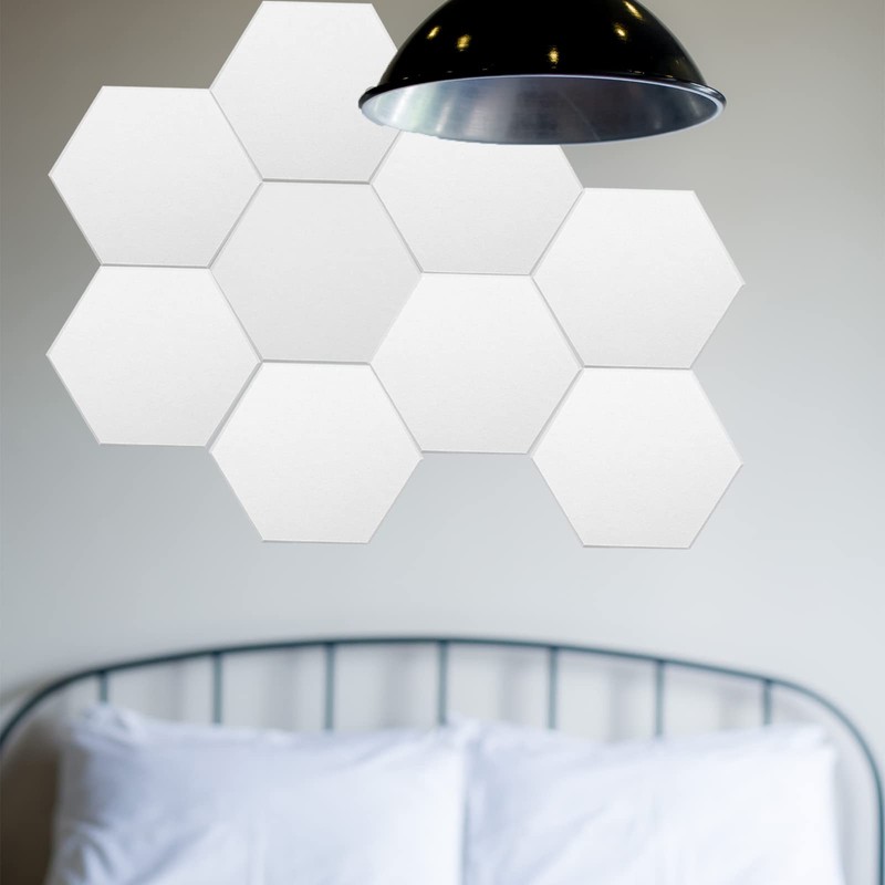 - ✅【Hexagon Acoustic Panels】Our hexagon acoustic panels are designed with stylish hexagonal beveled edges, and the surface felt in a variety of colors can not only absorb noise, but also play a role in decorating the wall. This beautiful soundproof wall panels use a honeycomb-style chamfer design that is perfect for bedroom decor and acoustic treatment. Acoustic foam panels can better protect your family and reduce collision damage.