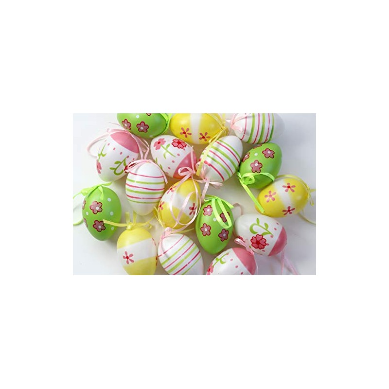 LB H&F Pack of 16 Decorative Easter Eggs 6 cm Eggs for Hanging Easter Hangers Easter Colourful (g)