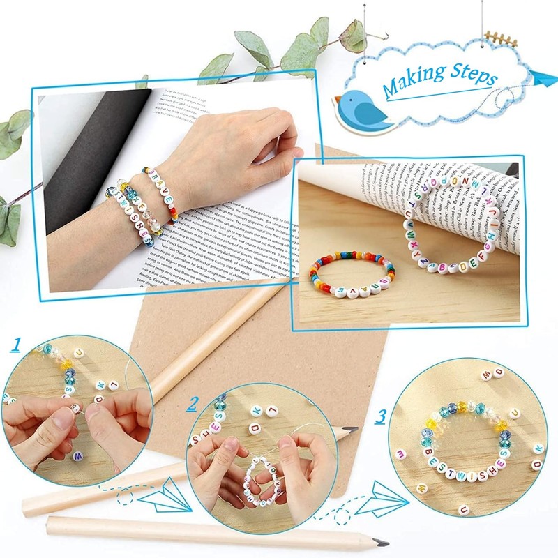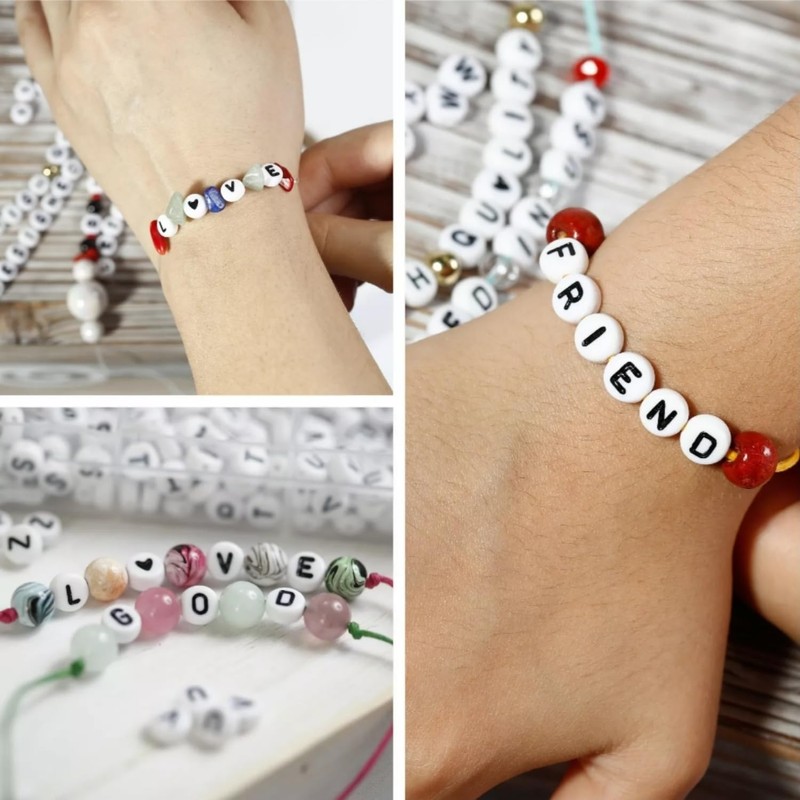 - 【Wide Applications】Letter number beads and elastic threads can be used for making bracelets, necklaces, handicrafts, keyrings decoration, jewellery making DIY etc…