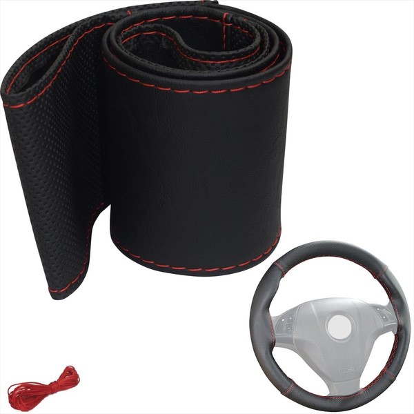 LBM51 Steering Wheel Cover Lacing Black Perforated with Red Stitching