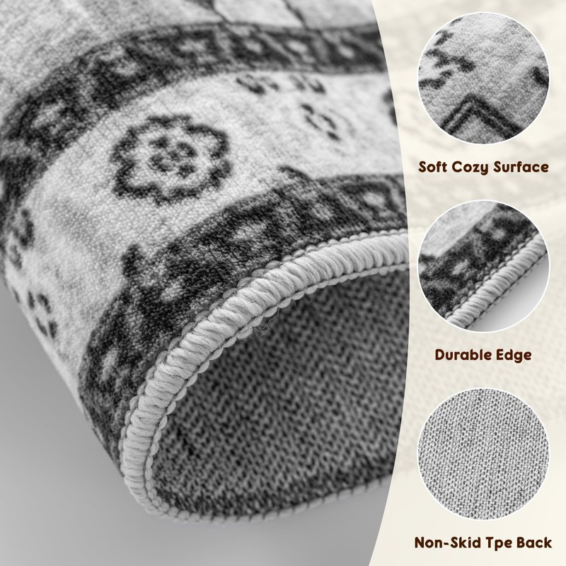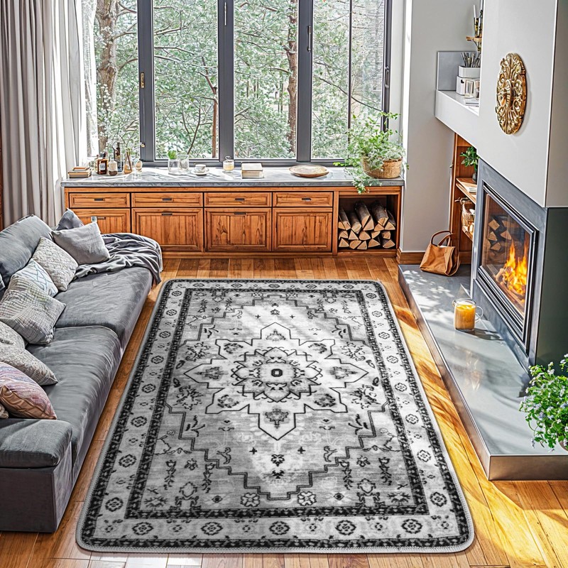 LBRO2M Boho Area Rug 6X9 Washable Rugs for Bedroom Low Piles Indoor Carpet, Non Slip Soft Rug for Living Room, Dining Room, Gray Rug Foldable Pet Friendly Area Rugs Stain Resistant (6'X9' Gray)