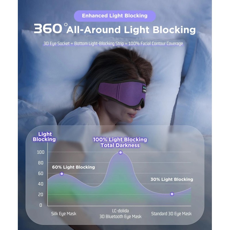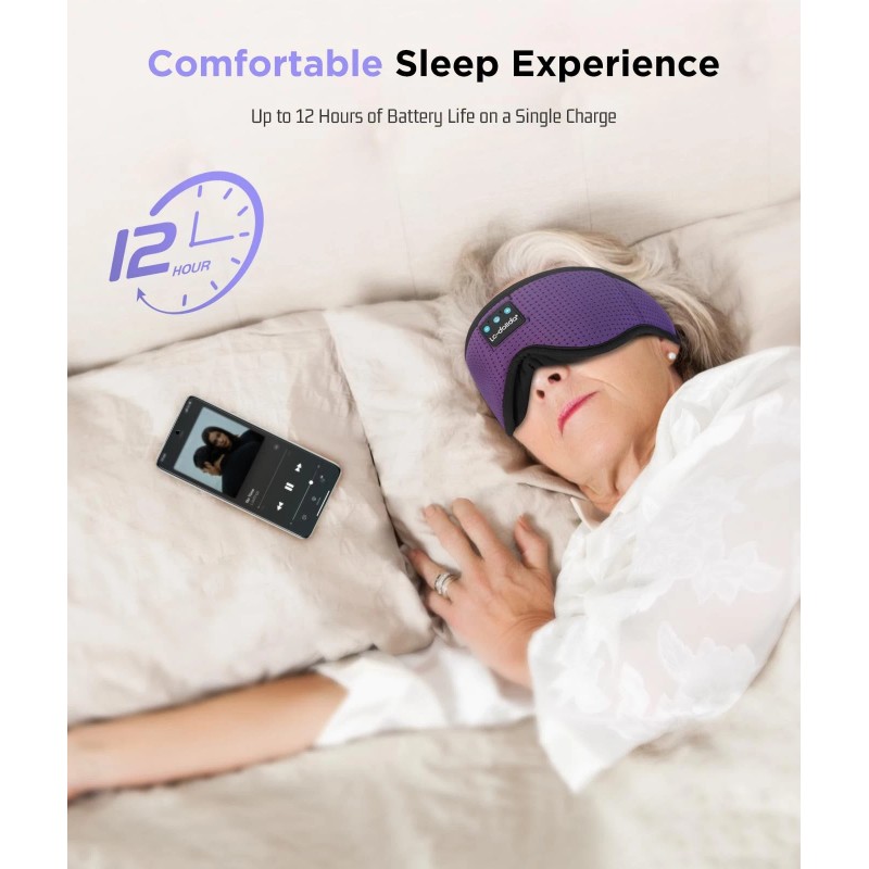 - 3-in-1 Sleep Headphones, Bluetooth Sleep Mask & Eye MaskOur latest Bluetooth sleep headphones with a soft headband design allow you to enjoy music hands-free while blocking out disturbances from messy hair and sweat. Ideal for naps, insomnia, air travel, meditation, yoga, and sleeping.