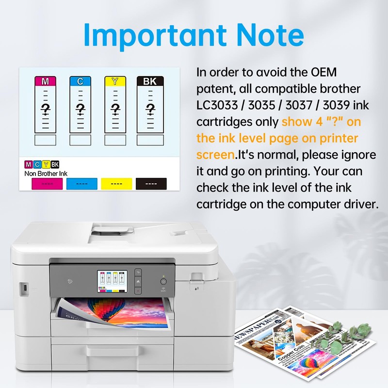 To protect original properties, all compatible lc406 ink cartridges cannot display the ink level which will display "?" on printer screen. It is normal, please ignore it and go on printing. If you want to check the ink level, please find it the printer driver on computer.