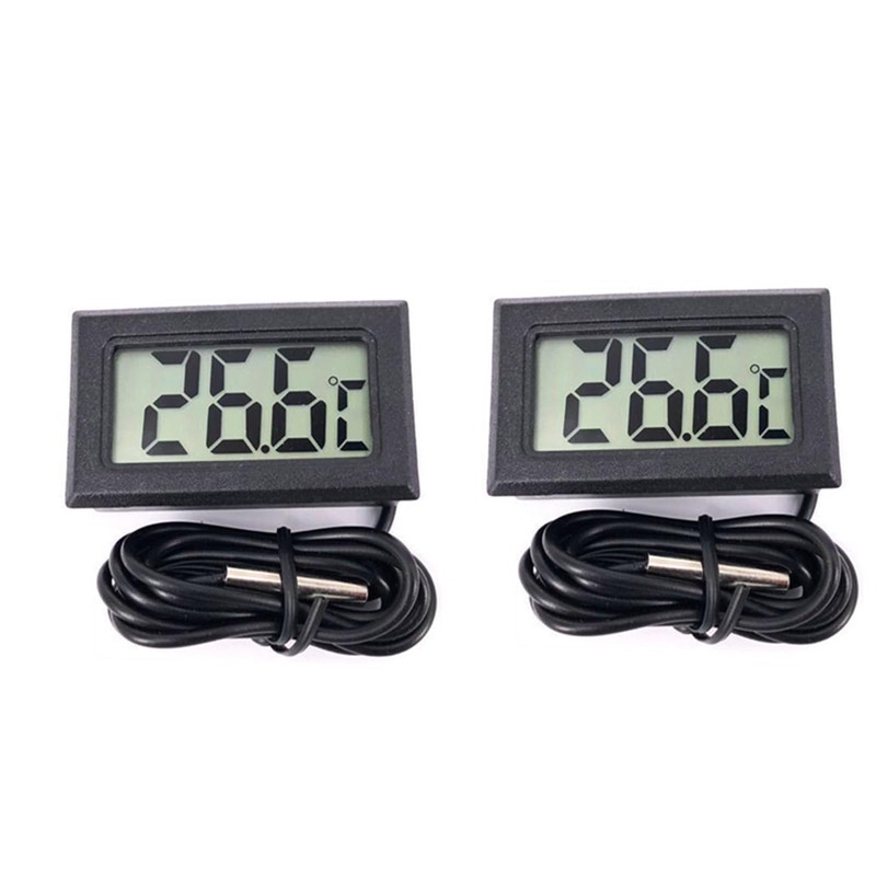 LCDデジタル温度計 -50℃~110℃ 温度モニター 防水温度プローブ 温度測定精度±1度(室温)小型で使いやすい 屋内 屋外 実験室 水槽 水族館 (ブラック 2個セット)