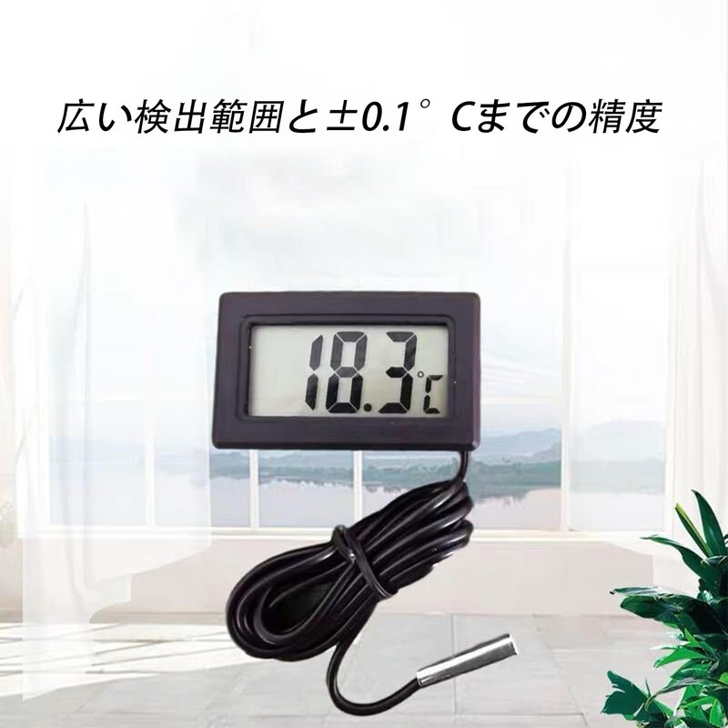 LCDデジタル温度計 -50℃~110℃ 温度モニター 防水温度プローブ 温度測定精度±1度(室温)小型で使いやすい 屋内 屋外 実験室 水槽 水族館 (...