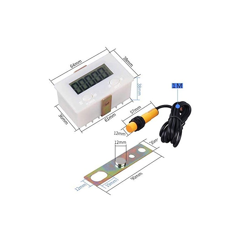 LCD Digital 0-99999 Counter 5 Digit Plus UP Gauge + Proximity Switch Sensor with Magnetic, Digital Counter for Knitting Machine, Electronic Tally Counter, Punch Digital Totalizer