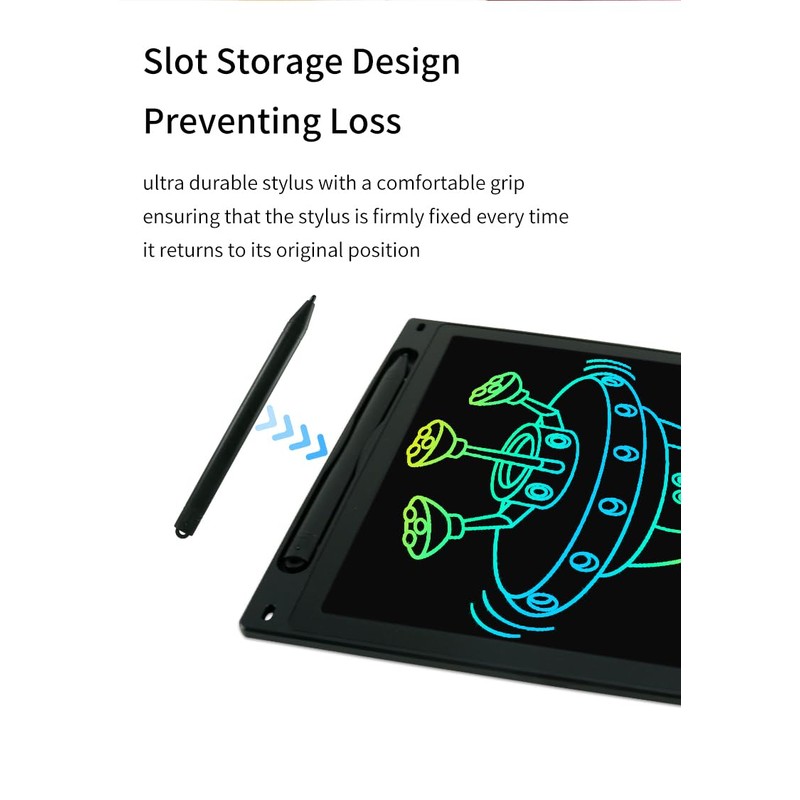 - Vibrant Colorful Screen: The LCD screen displays colorful lines that bring your child’s drawings to life, making learning and creativity more fun.