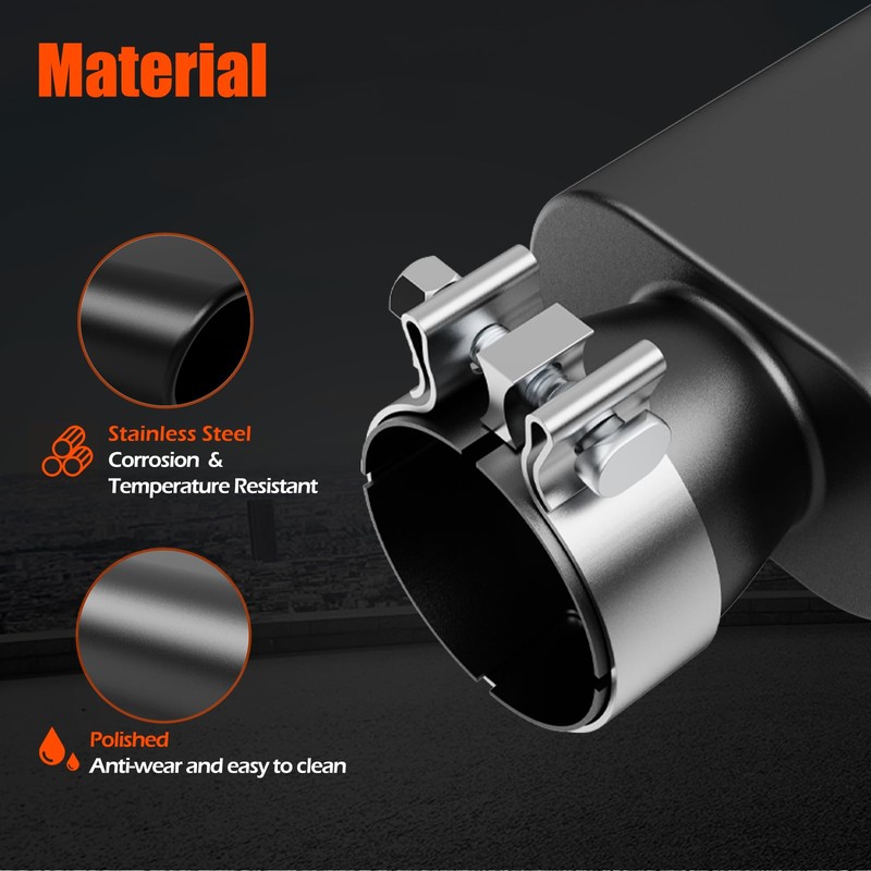 - INSTALLATION:The exhaust pipe has 4 slots to perfectly adapt to the size of the existing exhaust pipe.Simply install using the clamp and tighten with a wrench,easy to operate.Regular cleaning is recommended