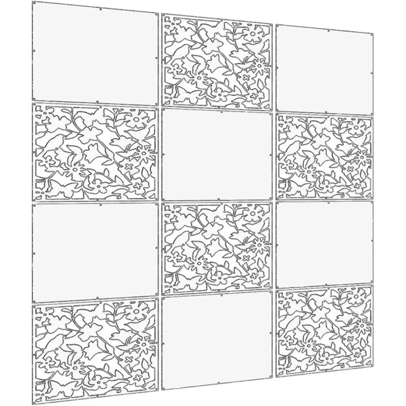 - HIGH QUALITY - 100% new. Package include 12 pieces hanging screen panel and all accessories.Size(each piece):15.7x15.7inches/thickness=0.032inches/Total weight=2.82 pounds.