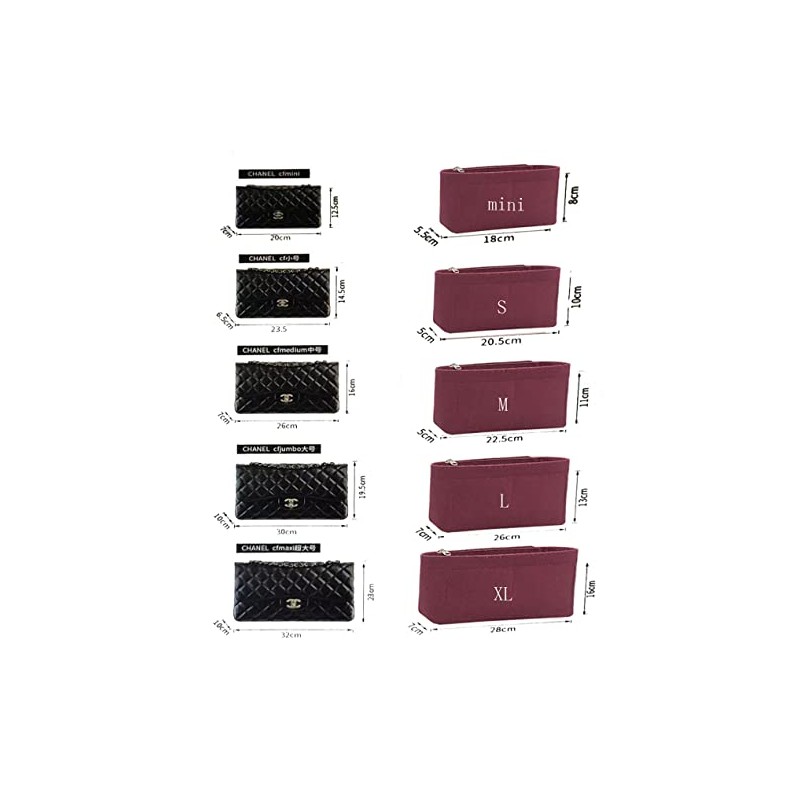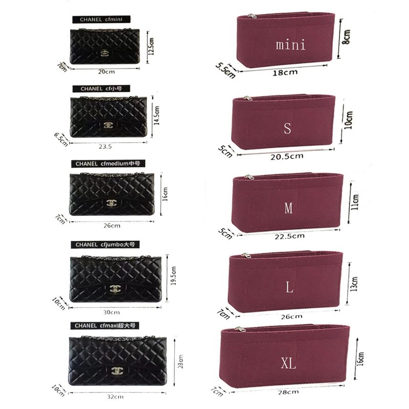 - DIMENSIONS: Specially designed for Classic Flap: chanel cf mini size :7.1x2.16x3.15inch(L xW xH)/ chanel cf small size:8.07x1.97x3.91inch(L xW xH)/ chanel cf medium size:8.86x2.16x4.33inch(L xW xH)/ chanel cf jumbo size:10.23x2.76x5.12inch(L xW xH)/ chanel cf maxi size:11x2.76x6.3inch(L xW xH)/ Please measure the size of the handbag before purchasing, and then compare the size chart to buy.If you buy too big or too small, you can change a size